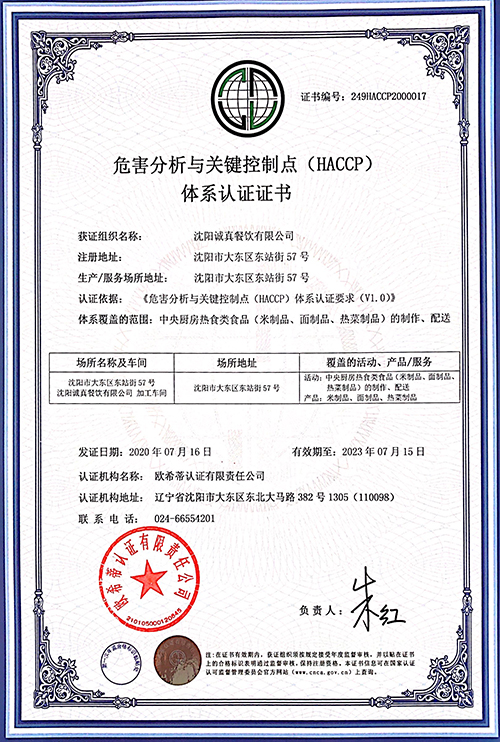 危害分析與關鍵控制點(HACCP)體系認證證書